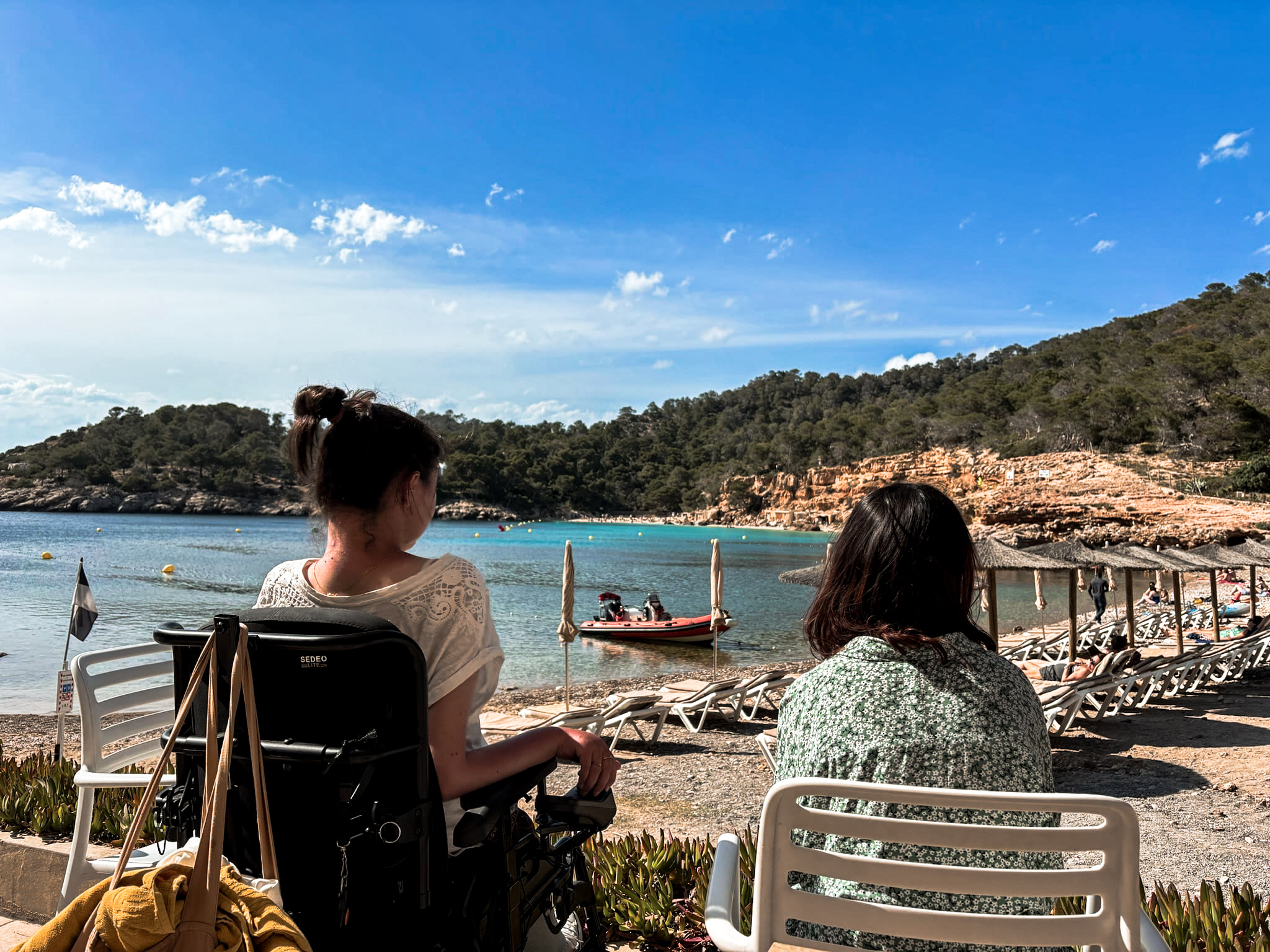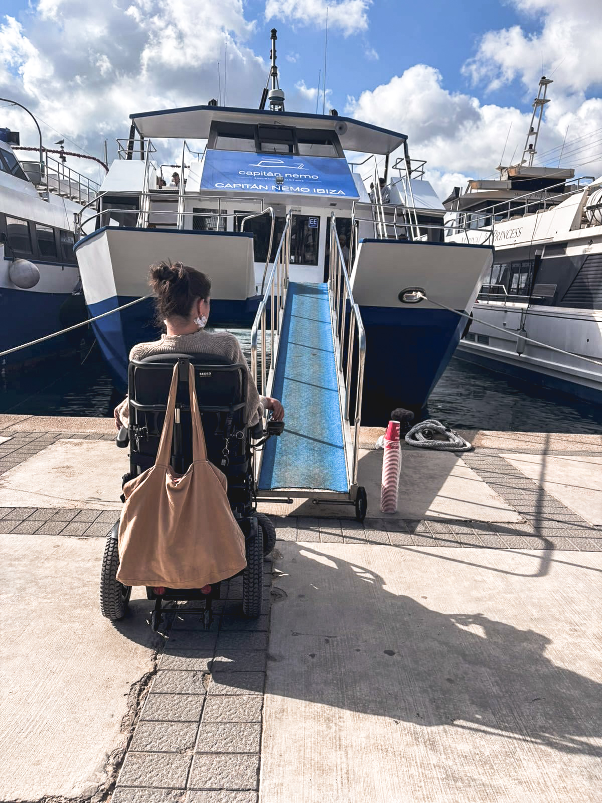 Pour aller à Ibiza, il n’y a que deux possibilités : par les airs ou par la mer. Le principal problème avec l’avion, c’est de trouver un véhicule accessible avec une rampe à louer sur place pour un prix raisonnable. J’ai donc choisi d’y aller avec ma propre voiture pour qu’on puisse être libres de parcourir l’île sans obstacle. Pour cela, la solution du ferry était parfaite !